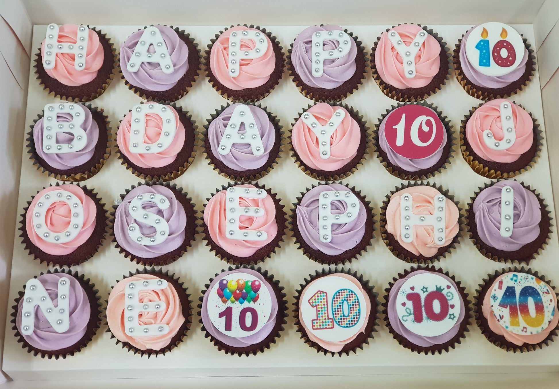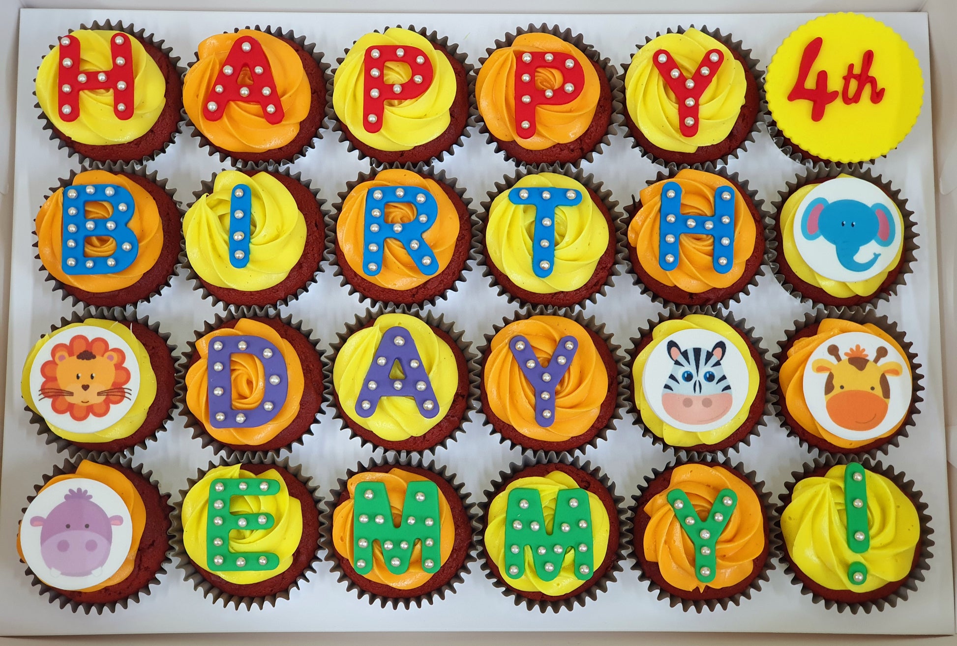 Please email us your choice of alphabets, numbers, images and cupcake colors at orders@cuppacakes.com.sg after you've placed your order. Please remember that the number of alphabets in your message should not exceed the number of cupcakes ordered. For a box of 24 (2 dozen), there are 4 rows of 6 cupcakes. Please let us know which alphabets/numbers/images go in the first row, and so on.