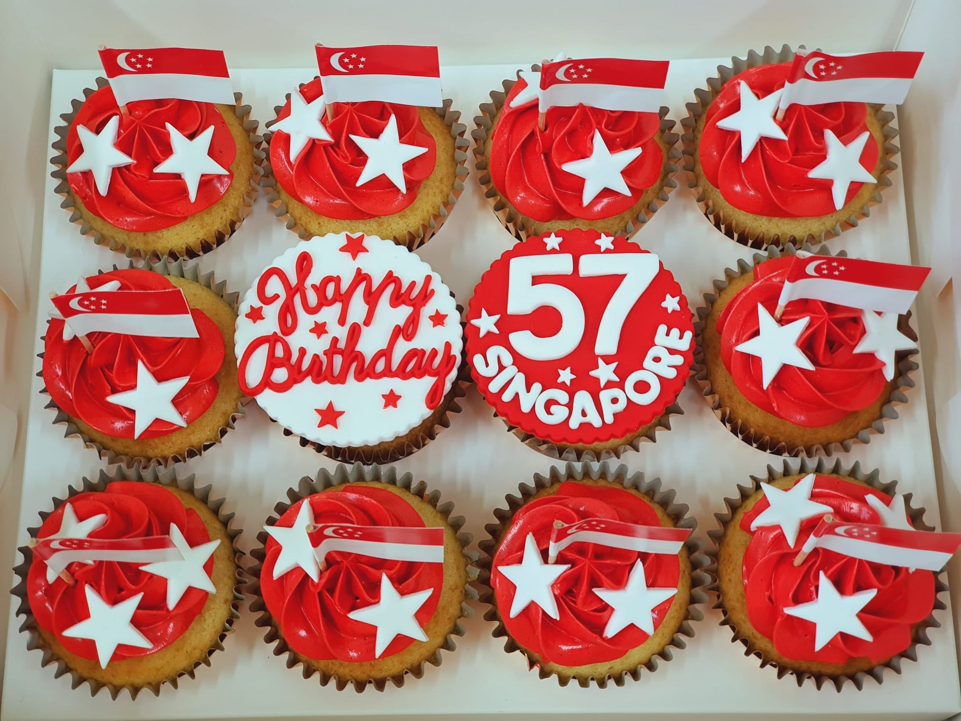 SG National Day Cupcakes (Box of 12) - Happy Birthday Singapore